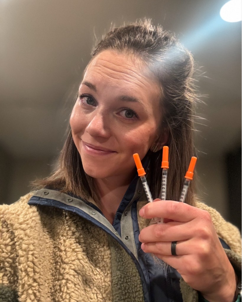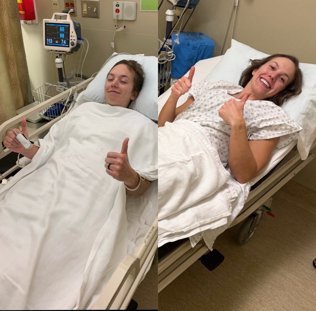 The actual embryo transfer was wild. It’s about a 10 minute procedure that you get to watch on a computer screen through ultrasound. You lay on your back and place your feet in the stirrups (just like at the OBGYN). They go into the uterine space with a catheter. The computer switches to the embryologist sucking your embryo up into another catheter. Then they combine the 2 catheters and place the embryo. The ultrasound tech is pushing into your abdomen the entire time trying to get the best view. Oh by the way, you have to have a full bladder for this procedure so you have to pee the entire time they are pushing on your bladder with the ultrasound. That’s it! You wait 20 seconds, they pull all the catheters out and then you get to go pee right away, get dressed and go home! After the embryo transfer you are on restrictions for 48 hours, no strenuous exercise or sex for 2 days. Continue all medication including estradiol 3x per day, 8 hours apart, intervaginal progesterone 2x per day, 12 hours apart and inter-muscular progesterone 1x per day at 7:00 pm.